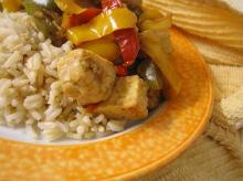 | Tempeh Pepper steak Recipe - Food.com tempeh, red bell pepper, green bell pepper, brown rice, sesame seed oil, oil, ginger root, onion, garlic, soy sauce Another from The Whole Soy Cookbook. Serving Size: 1 (244) g Servings Per Recipe: 6 AMT. PER SERVING % DAILY VALUE Calories: 319.1 Calories from Fat 122 g 38 % Total Fat 13.6 g 20 % Saturated Fa...