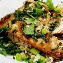 | Asian Garlic-sesame Sole Recipe seafood stock, cornstarch, sesame seed oil, pepper, spring onion, garlic, sole, soy sauce, salt, rice vinegar, honey, water This delicious fish dish is excellent with steamed rice or soba noodles. You can serve the fish over wilted spinach, baby bok choy or snow peas too if you’re still going low-carb! There are abou...