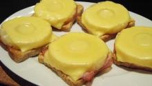| Hawaiian Toast Recipe - Food.com butter, pineapple, ham, cheese, bread quick and great for snack or appetizer Serving Size: 1 (212) g Servings Per Recipe: 4 AMT. PER SERVING % DAILY VALUE Calories: 283.3 Calories from Fat 146 g 52 % Total Fat 16.2 g 24 % Saturated ...