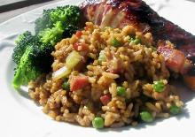 | Fried Rice Casserole Recipe - Food.com onion soup mix, oil, soy sauce, rice, water Serving Size: 1 (210) g Servings Per Recipe: 6 AMT. PER SERVING % DAILY VALUE Calories: 338.8 Calories from Fat 85 g 25 % Total Fat 9.5 g 14 % Saturated Fat 1.3 g 6 % Cholesterol 0 mg 0 % Sodi...