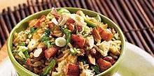 | Fried Rice Recipe - Food.com peanut oil, ginger root, garlic chives, red chili, spring onion, shrimp, eggs, soy sauce, rice This is a recipe from Donna Hay. When I can get it I also like to add barbecued pork, or even Chinese sausage which is available from most supermarkets. It's a meal in itself. Serving Size: 1 (308...
