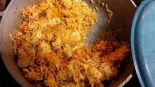 | Dominican Rice and Chicken Recipe - Food.com chicken, tomato paste, green pepper, oil, thyme, pepper, parsley, oregano, coriander, olive, garlic, celery, salt, rice, sugar, water descendant of the Spanish paella, combines herbs, rice, chicken and vegetables. Serving Size: 1 (1118) g Servings Per Recipe: 4 AMT. PER SERVING % DAILY VALUE Calories: 1471.8 Calories from Fat 54...