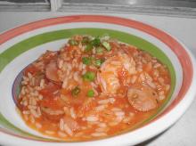 | Shrimp and Beef Jambalaya Recipe - Food.com tomato sauce, green bell pepper, chili dried/powder, hot sauce, ground beef, oil, pepper, paprika, onion, garlic, tomato, shrimp, worcestershire sauce, salt, rice All my Southern recipes are from the help from EDNA. Serving Size: 1 (634) g Servings Per Recipe: 4 AMT. PER SERVING % DAILY VALUE Calories: 616.4 Calories from Fat 262 g 43 % Total Fat 29.1 g 44...