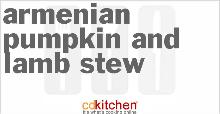 | Armenian Pumpkin And Lamb Stew Recipe | CDKitchen.com acorn squash, chicken stock, beef stock, oil, pepper, parsley, coriander seed, coriander leaf, cloves, cinnamon, cumin, cardamom, carrot, onion, garlic, celery, tomato, pumpkin, lamb, salt, rice A recipe for Armenian Pumpkin And Lamb Stew made with coriander seed, cardamom seed, ground cinnamon, cumin seed, whole clove, vegetable oil Combine coriander, cardamom, cinnamon, cumin and clove in a...