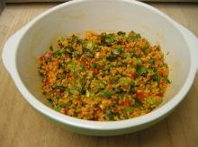 | Kisir (Turkish Bulgur Wheat Salad) Recipe - Food.com bulgur wheat, red pepper, olive oil, pepper, parsley, mint, cayenne pepper, spring onion, tomato, salt, ajvar, lemon juice, water This is not a traditional Turkish Kisir, but the best I can do with the ingredients available in local stores. The salad is simple, and it's good for a light summertime meal. Serving Size: 1 (158)...