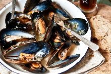 | Mussels cooked in ale with garlic and eschalot - Recipes - delicious.com.au butter, olive oil, parsley, garlic, mussel, bread, ale There's nothing like a pot of mussels scooped up with tasty homemade bread. 1. Warm olive oil in a large saucepan over low heat. Add butter, eschalots, garlic and a pinch of sea salt flakes, then...