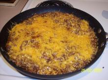 Bean and Beef Skillet Recipe - Food.com baked beans, ground beef, onion, barbecue sauce, cheddar cheese This is so easy and yet very satisfying. I found this in my TOH 5 ingredient cookbook. Paired with corn and biscuits you have a complete meal. Serving Size: 1 (383) g Servings Per Recipe: 4 AMT. PER...