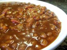 | One Pot Bean Casserole Recipe - Food.com baked beans, liquid smoke, pepper, kidney bean, lima bean, onion, bacon, burger, white vinegar, salt, tomato ketchup/catsup, brown sugar This is a recipe my mom always made. Now I make it myself. It is one of my favorite! As an alternative to the burger and bacon I use turkey burger and turkey bacon. Serving Size: 1 (445) g Servings P...