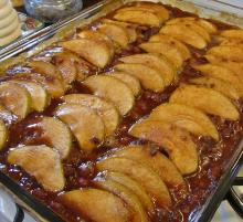 | Apple Topped Baked Beans Recipe - Food.com butter, baked beans, apple, bacon, brown sugar These are really good. I've had the recipe since 1969 and fix them a lot for Bar-B-Ques. Serving Size: 1 (222) g Servings Per Recipe: 5 AMT. PER SERVING % DAILY VALUE Calories: 295.4 Calories ...