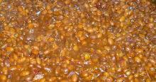 | Glorified Baked Beans Recipe by admin | ifood.tv baked beans, pineapple, onion, mustard, barbecue sauce, worcestershire sauce, tomato ketchup/catsup, molasses, brown sugar Combine all ingredients in a 3 qt.glass casserole dish. Cover with a paper towel. Microwave 9 to 12 minutes [SIMMER 4, 30 minutes] or until beans are piping hot. Stir twice during cooking. Recipe ...