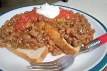 | Twisted Baked Beans Recipe - Food.com baked beans, green pepper, ground beef, onion, salsa, brown sugar I'm not one for baked beans, but I tried these at a BBQ and just had to have the recipe. Now I'm passing this recipe on to you. ENJOY!! Very interesting flavor. Serving Size: 1 (213) g Servin...