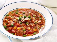 | Vegetarian 15-Bean Soup | Food & Wine bean soup, red pepper, vegetable stock, bicarbonate of soda, olive oil, rosemary, carrot, onion, garlic, celery, tomato, red wine vinegar, salt, parmesan cheese, cheese, water Can't make up your mind whether to make bean or lentil soup? Grab a bag of 15-bean soup in the dry goods aisle at the market and make this flavorful, hearty vegetarian soup instead. Instructions C...