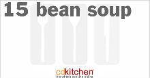 | 15 Bean Soup Recipe | SparkRecipes bean soup, tomato soup Wonderful vegan 15 Bean Soup Recipe. Soak beans overnight. Cook in two quarts water for 1.5 hours. Drain off some of the water. Add remaining ingredients and simmer for another hour. Number of Serving...