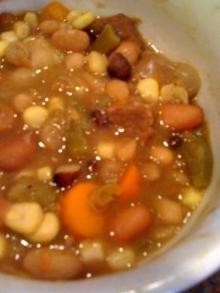 | 10 Bean Soup Recipe - Food.com bean soup, vegetable stock, chicken stock, canola oil, pepper, carrot, onion, garlic, celery, green beans, tomato, sweetcorn, salt, water Yes, another soup recipe! We really love a hot bowl of soup on a cold winter day for lunch. The challenge is keeping it low fat and healthy. This bean soup is fantastic! It makes alot and it freezes w...