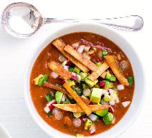 | Tortilla Soup Recipe With Chilli | olivemagazine bean soup, olive oil, coriander, red chili, avocado, radish, spring onion, tortilla Try our tortilla soup recipe with chilli. Our easy tortilla soup recipe is an easy chilli soup ready in 15 minutes. Make our chilli soup for a winter recipe STEP 1 Cut the tortilla into strips and sh...