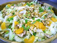 An oriental salad with the wonderful taste of bacon and the crunch of water chestnuts, accompanied with a sweet and sour dressing.