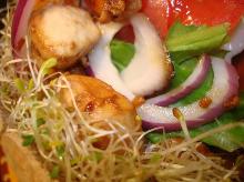 chicken breast,    teriyaki sauce,    pitta bread,    garlic,    bean sprouts,    tomato,    lettuce