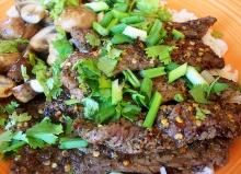 | Stir-fried beef with Asian greens, Sichuan pepper and hoisin - Recipes - delicious.com.au beef fillet steak, shiitake mushroom, hoisin sauce, peanut oil, spring onion, onion, rice Forget the take-away, you can whip this up in less time and it will be much tastier! 1. Heat 1 tablespoon peanut oil in a wok over high heat. Add half the beef and stir-fry until it just browned. Rem...