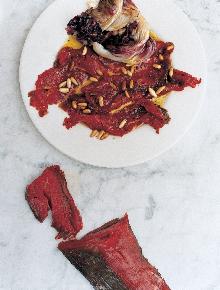 | Beef Carpaccio beef fillet steak, olive oil, pine nut, lemon, parmesan cheese A simple recipe which embraces great quality beef fillet. The beef carpaccio is served with extra virgin olive oil, pine nuts, lemon juice and Parmesan cheese. Cut the fillet at a slight angle into 2m...