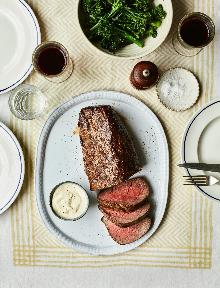 | Herb Pepper-Encrusted Beef Fillet Recipe - Food.com beef fillet steak, evaporated milk, tarragon vinegar, oil, thyme, tarragon, rosemary, pepper, shallot, mustard, salt This is a delicious treat! I would enjoy this with a baked potato, salad, and some bread. Give it a try, I know you will love it! Serving Size: 1 (52) g Servings Per Recipe: 8 AMT. PER SERVING % DAI...