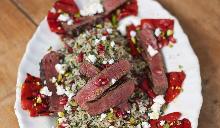 | Griddled Steak & Peppers Herby Jewelled Tabbouleh Rice beef fillet steak, feta cheese, red pepper, brown rice, olive oil, pistachio, parsley, mint, lemon, pomegranate, spring onion Enjoy this simple steak recipe from Jamie Oliver's Everyday Super Food cookbook. Indulgent but healthy, this dish makes a special dinner for two without overdoing it on the calories. Cook the rice...