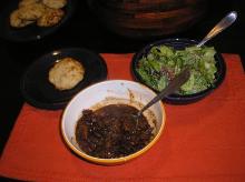 | Red Chili Recipe - Food.com beef sirloin steak, tomato paste, chili dried/powder, beef stock, ground beef, oil, oregano, coriander seed, cayenne pepper, chili pepper, cumin, kidney bean, onion, garlic, tomato, salt, brown sugar, cocoa powder, beer/lager, coffee Although the ingredients are unusual, this is outstanding red chili. Serving Size: 1 (394) g Servings Per Recipe: 10 AMT. PER SERVING % DAILY VALUE Calories: 426.2 Calories from Fat 143 g 34 % To...