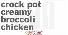 | Crock Pot Creamy Broccoli Chicken Recipe | CDKitchen.com broccoli soup, chicken breast, pepper, broccoli, salt, milk A recipe for Creamy Broccoli Chicken made in the crock pot made with cream of broccoli soup, boneless breasts of chicken, milk, frozen broccoli, salt, black Place chicken in the crock. Cover with froz...