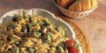 | Sausage and Broccoli with Pasta - Campbell's Kitchen - Campbell's Kitchen broccoli soup, red pepper, onion, garlic, broccoli, sausage, parmesan cheese, pasta, milk Need a great dish in a hurry? Try this savory skillet dish brimming with hot cooked pasta, broccoli, seasoned sausage, and a creamy broccoli cheese sauce. Cook the sausage in a 6-quart saucepot over m...