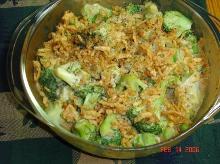 | Chicken and Rice Bake Recipe - Food.com broccoli soup, chicken breast, fried onions, chicken soup, pepper, paprika, mushrooms, rice, cream, water This is one of those easy casseroles to make on busy weeknights. The French Fried onions give it such a nice flavor. Serving Size: 1 (296) g Servings Per Recipe: 4 AMT. PER SERVING % DAILY VALUE Ca...