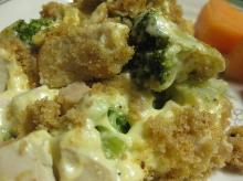 | Creamy Chicken Bake - Campbell's Kitchen butter, broccoli soup, chicken breast, dried garlic, mushrooms, parmesan cheese, bread crumbs, milk Chicken breasts are coated with a mixture of bread crumbs and Parmesan cheese, then topped with a creamy garlic-mushroom sauce featuring Campbell's Condensed Cream of Broccoli Soup. Place the chic...
