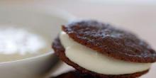 | Chocolate Sandwich Cookies Recipe butter, oat flour, almond flour, cane juice, ricotta cheese, bicarbonate of soda, vanilla, eggs, salt, baking powder, cream cheese, cocoa powder, lemon juice Delicious chocolate cookies blend with a creamy ricotta cheese and low-fat cream cheese filling to create these chocolate sandwich cookies. Preheat oven to 375 degrees F. Line a baking sheet with parc...