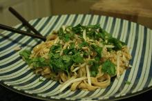 | Pad Thai Recipe - Food.com cane juice, chili dried/powder, olive oil, peanut, lemongrass, coriander, coconut milk, spring onion, garlic, bean sprouts, soy sauce, tomato ketchup/catsup, noodles, lime juice I got this recipe from a vegan cookbook (I can't remember which one). Again, just looking for the nutritional information. Serving Size: 1 (180) g Servings Per Recipe: 2 AMT. PER SERVING % DAILY...