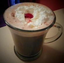 | Cherry Cordial Hot Chocolate Recipe maraschino cherry, sugar, cherry juice, chocolate syrup, whipped cream, milk, half and half This whips up easily for an incredible speciality shop.drink Heat first 3 ingredients and 7 tbsp cherry juice in a Dutch oven over medium-low heat, stirring often. Beat whipping cream at medium spee...