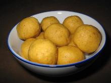 | Besan ladoo - Student Recipes chickpea flour, almond, cardamom, sugar, ghee Sweet chickpea flour balls with cashews and almonds Step 1: Coarsely grind cashew nuts and almonds and keep aside. Step 2: Melt the ghee (clarified butter) in a deep pan, on low heat. Add besan (ch...