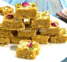 | Chickpea Flour Fudge / Magas / Magaj / Besan Barfi Laddu Recipe Video by bhavnaskitchen | ifood.tv chickpea flour, cashew, cardamom, sugar, milk, ghee You will get grainy texture in every bite because of the coarse chickpea flour. Yes, traditionally coarse variety is used to make magas. The procedure is almost the same as besan ladoo. The only diffe...