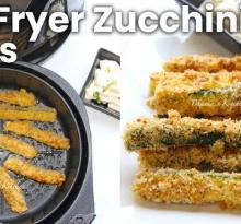 | Air Fryer Crispy Zucchini Fries Recipe Video by bhavnaskitchen | ifood.tv chili dried/powder, chickpea flour, oil, zucchini/courgette, salt, bread crumbs, water Summer zucchini is bountiful right now. And if you (or your neighbors) have a garden, you're likely loaded down with the green stuff. Thinly sliced zucchini dusted in breadcrumbs and baked until c...