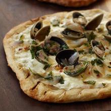 | White Clam Pie Recipe - Mario Batali | Food & Wine cockles, red onion, chili dried/powder, parsley, garlic, salt, dough, mozzarella cheese, white wine #$space#$Slideshow: #$space#$More Pizza Recipes#$space#$... Instructions Checklist Step 1 Preheat the griddle to 300 F. Cook the 4 pizza rounds for 30 seconds on each side. Remove from heat and set ...
