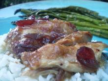 | Slow-Cooker Cranberry Chicken Recipe - Food.com chicken thigh, cranberry sauce, tapioca, onion soup mix, rice So easy to put in the crockpot and dinner is ready! Served with some rice to soak up the sauce. Serving Size: 1 (367) g Servings Per Recipe: 6 AMT. PER SERVING % DAILY VALUE Calories: 665.3 Calori...