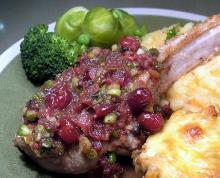 | Pork Chops With Cranberry-thyme Sauce Recipe - Food.com butter, pork chop, cranberry sauce, thyme, spring onion, white wine Another recipe from my Aunt's collection. I'm not sure where she orginally got it from, but it is delicious. This recipe doubles very easily. Serving Size: 1 (257) g Servings Per Recipe: 2 A...