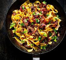 | Duck Pappardelle Recipe | olivemagazine butter, duck liver, red onion, chicken stock, oil, parsley, red wine vinegar Try our pappardelle pasta recipe with duck livers and caramelised onions. This duck liver recipe is a quick and easy pasta recipe using pappardelle pasta STEP 1 Boil the chicken stock in small pan un...