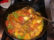 | Spicy Pork and Potato Stew Recipe - Food.com pork chop, fenugreek/methi, chicken stock, peanut oil, curry powder, turmeric, ginger root, cumin, peas, potato, onion, garlic, tomato A very colorful tasty stew. This can be as spicy as you want it. My husband, Michael made this up from ingredients on hand, the other night. It is wonderful! We like it spicy. We had this again tonigh...