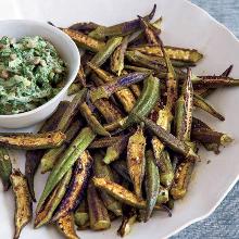 | Skillet-Roasted Spiced Okra Recipe - Kevin Gillespie | Food & Wine fenugreek/methi, oil, turmeric, paprika, fennel seeds, coriander seed, cinnamon, cumin, okra, salt, lemon juice Okra is popular in Southern cooking; Kevin Gillespie roasts it with Indian spices like cumin. The crispy okra is delicious on its own or with yogurt a... Instructions Checklist Step 1 In a small bow...