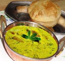 | Aloo Methi Malai Curry - Potato Fenugreek Curry Recipe Video by bhavnaskitchen | ifood.tv fenugreek/methi, red onion, oil, garam masala, turmeric, ginger root, coriander, green chili, cumin, potato, garlic, tomato, salt, cream, water Just aroma of the curry can make you hungry. MAKING 1. In a pot, add water, salt and potato, cook until potato is tender. 2. Discard half of the water. To the pot, add fenugreek and cook for a coupl...