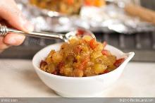 | Mango Chutney #1 Recipe | RecipeLand fenugreek/methi, chili dried/powder, corn oil, ginger root, cumin, mango, raisin, garlic, malt vinegar, salt, brown sugar, lemon juice Slice mangos in half by cutting lengthwise close to seeds on either side. Peel and cut flesh in ⅛ inch thick slices. Also cut away as much mango flesh as possible from around pits, without inc...