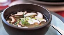| Miso-Ginger Consomme Recipe | Bon Appetit fermented bean paste, shiitake mushroom, miso, ginger root, spring onion, soy sauce Miso-Ginger Consomme Recipe Step 1 Using a Microplane or the coarse holes of a box grater, finely grate ginger. Wrap gratings in cheesecloth and squeeze juice through cheesecloth, yielding 11...