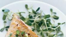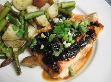 | Miso-glazed Salmon Recipe fermented bean paste, miso, canola oil, sesame seed, spring onion, salmon, soy sauce, brown sugar, water In order to nicely brown the outer layer of the fillets without regressing to the tough, dry texture of the broiled recipes,sprinkling the flesh with salt and pepper, then quickly pan seared the fille...