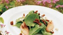 | Spinach and Pear Salad with Rosemary Vinaigrette Recipe | Bon Appetit blue cheese, fermented bean paste, miso, vegetable stock, pecan, rosemary, parsley, pear, shallot, spinach, red wine vinegar, rice vinegar Spinach and Pear Salad with Rosemary Vinaigrette Recipe Step 1 Process first 5 ingredients in blender until smooth. Pour into small bowl. Mix in herbs. Season dressing to taste with salt and pepper. ...