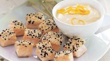 | Stellar Sesame Shrimp with Miso Dipping Sauce Recipe | MyRecipes fermented bean paste, miso, sesame seed oil, oil, sesame seed, pepper, ginger root, garlic, shrimp, salt, orange and pineapple juice, water The shrimp are best prepared the day of the party and refrigerated up to eight hours. Make the miso dipping sauce up to three days in advance, and chill. Kosher salt gives an added crunch to the shrim...
