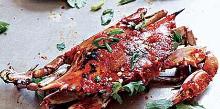 | Chile Crabs Recipe | MyRecipes fermented bean paste, red bell pepper, miso, coriander leaf, chili pepper, spring onion, garlic, crab, tomato ketchup/catsup, sugar, lime juice This iconic dish is a favorite in Singapore, but traditionally, the crabs are fried in the chile mixture. Here we offer a healthier grilled version. Place each crab on its back, and snip off the small...