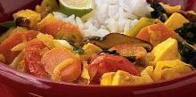 | Indonesian Tofu and Vegetable Stew | Diabetic Recipe - Diabetic Gourmet Magazine added vitamins/minerals/fats, red bell pepper, vegetable stock, chicken stock, canola oil, ginger root, coriander seed, coriander leaf, cloves, cumin, coconut milk, lime, onion, garlic, green beans, zucchini/courgette, firm tofu Recipe for Indonesian Tofu and Vegetable Stew from the diabetic recipe archive at Diabetic Gourmet Magazine with nutritional info for diabetes meal planning. In a bowl, marinate tofu with the ginger, ...